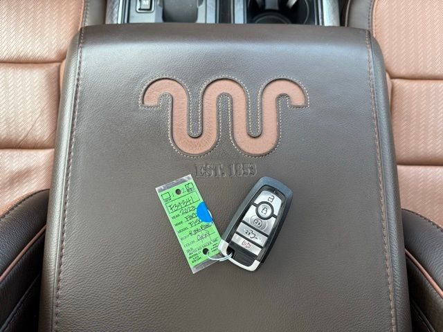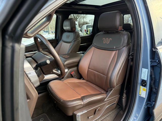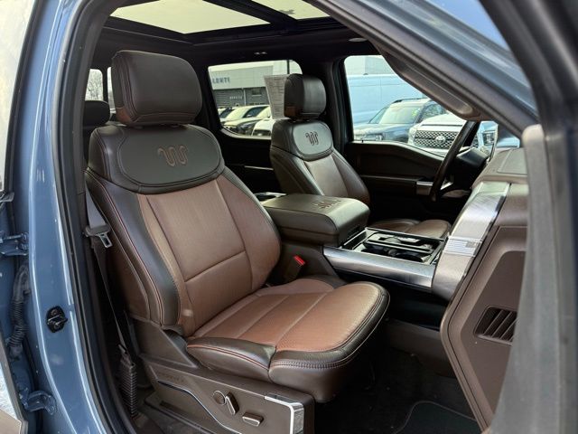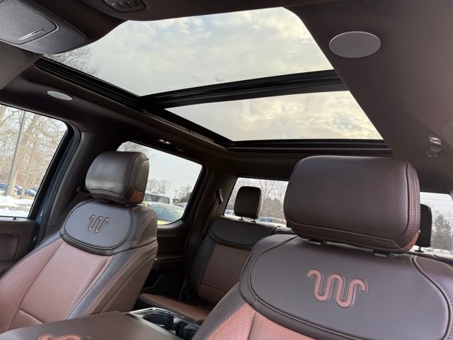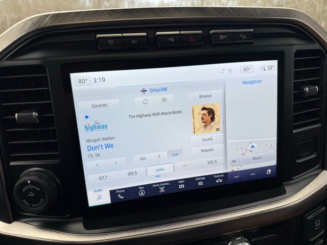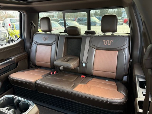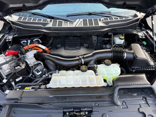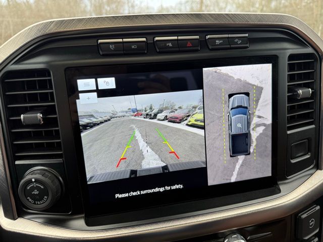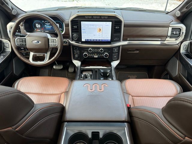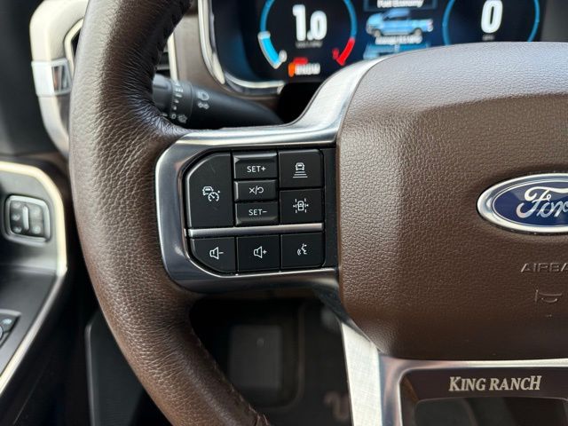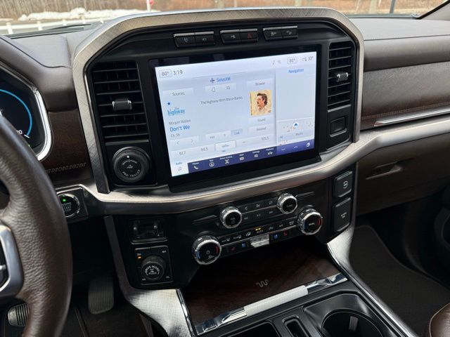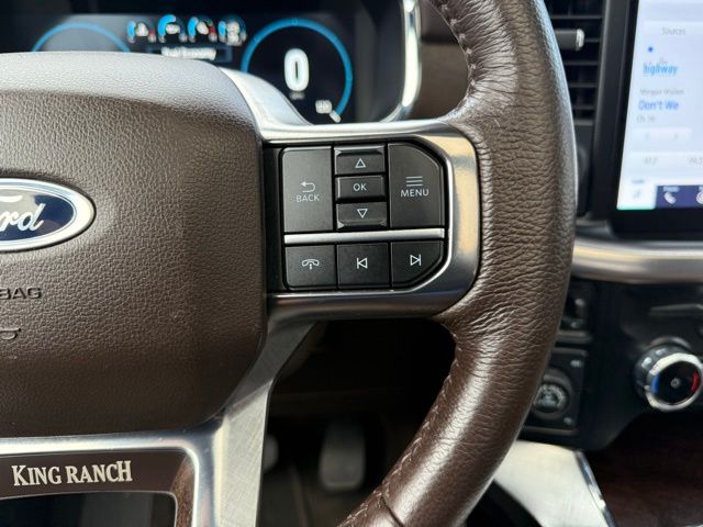 3.5L PowerBoost Full-Hybrid V6, 4WD, 20" Machined-Aluminum Wheels, 360 Degree Camera, 4-Wheel Disc Brakes, 4x4 FX4 Off-Road Bodyside Decal, 8 Speakers, 8.4 -Inch Display Audio w/ Electrostatic Touchscreen, ABS brakes, Adjustable pedals, Air Conditioning, Alloy wheels, AM/FM radio: SiriusXM with 360L, Auto High-beam Headlights, Auto Start-Stop Removal (DISC), Auto tilt-away steering wheel, Auto-dimming door mirrors, Auto-dimming Rear-View mirror, Automatic temperature control, Bed Utility Package, Bedliner/Ford Factory Spray-In Bedliner, BoxLink, Brake assist, Bright Belt Moldings, Center High-Mounted Stop Lamp CHMSL Camera Removal, Chrome Door Handles w/Body-Color Strap, Chrome Skull Caps on Exterior Mirrors, Class IV Trailer Hitch Receiver, Compass, Delay-off headlights, Driver door bin, Driver vanity mirror, Dual front impact airbags, Dual front side impact airbags, Dual-Pane Paoramic Sunroof, Electronic Locking w/3.31 Axle Ratio, Electronic Stability Control, Emergency communication system: SYNC 4 911 Assist, Equipment Group 601A High, Extended Range 36 Gallon Fuel Tank, Exterior Parking Camera Rear, Fog Lamps, Front & Rear Chrome Bumpers, Front anti-roll bar, Front Bucket Seats, Front Center Armrest, Front dual zone A/C, Front reading lights, Front wheel independent suspension, Fully automatic headlights, FX4 Off-Road Package, Garage door transmitter, Genuine wood console insert, Genuine wood dashboard insert, Genuine wood door panel insert, Heated door mirrors, Heated rear seats, Heated Second Row Seats/Heated Rear Seats, Hill Descent Control, Illuminated entry, Inclination/Intrusion Sensor Removal, Integrated Trailer Brake Controller, King Ranch Chrome Appearance Package, King Ranch Leather Bucket Seats, LED Box Lighting, LED Sideview Mirror Spotlights, Max Trailer Tow Package, Memory seat, Monotube Rear Shocks, Multi-Contour Driver & Passenger Seats, Multicontour Seats w/Active Motion Removal, Occupant sensing airbag, Off-Road Tuned Front Shock Absorbers, Outside temperature display, Overhead airbag, Overhead console, Panic alarm, Passenger door bin, Passenger vanity mirror, Pedal memory, Power door mirrors, Power driver seat, Power passenger seat, Power steering, Power Tailgate, Power windows, Power-Deployable Running Boards, Pro Power Onboard - 7.2KW, Pro Trailer Backup Assist & Pro Trailer Hitch Assist, Radio: B&O Sound System by Bang & Olufsen, Radio: B&O Unleashed Sound System by Bang & Olufsen, Rain sensing wipers, Rear reading lights, Rear seat center armrest, Rear step bumper, Rear window defroster, Remote keyless entry, Rock Crawl Mode, Security system, Speed control, Speed-sensing steering, Split folding rear seat, Steering Wheel Heat Removal (DISC), Steering wheel memory, SYNC 4 w/Enhanced Voice Recognition, Tachometer, Tailgate Step w/Tailgate Work Surface, Telescoping steering wheel, Tilt steering wheel, Tire Pressure Monitoring System, Traction control, Tray Style Floor Liner, Trip computer, Turn signal indicator mirrors, Twin Panel Moonroof, Variably intermittent wipers, Ventilated front seats, Voltmeter, Wheels: 20" Chrome-Like PVD. Odometer is 8898 miles below market average!