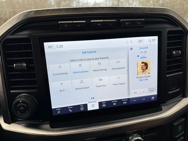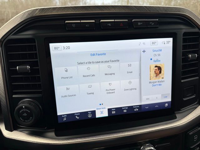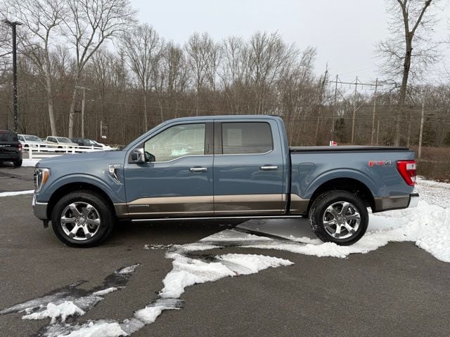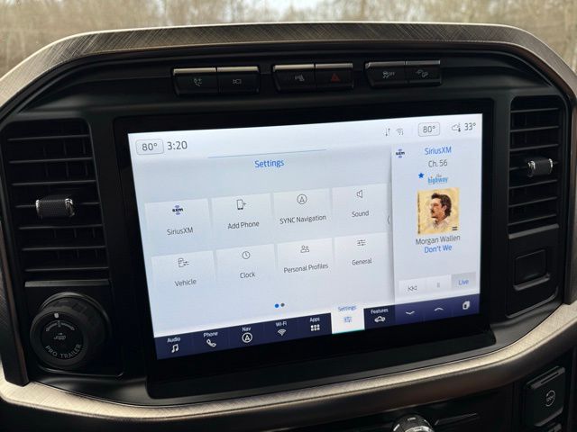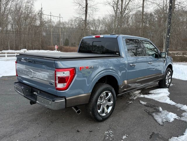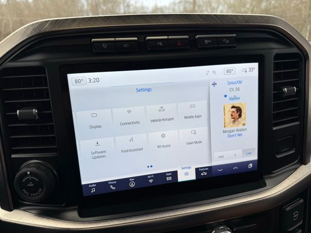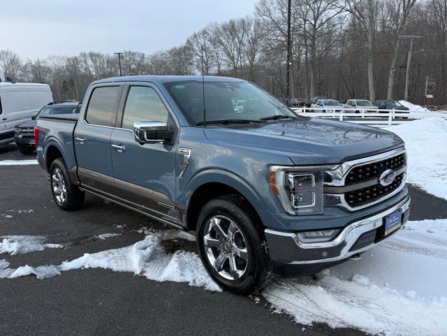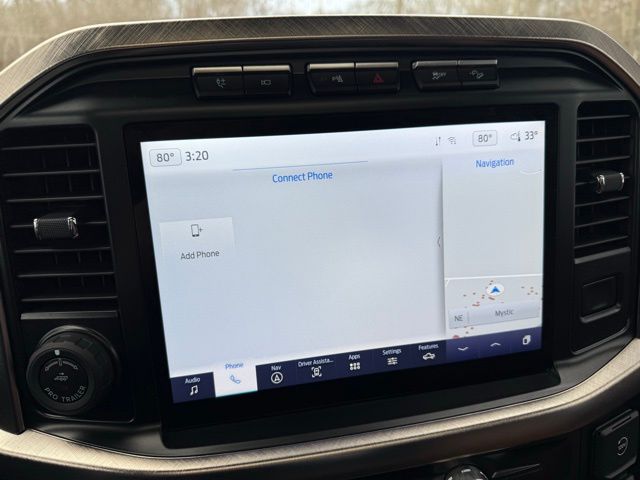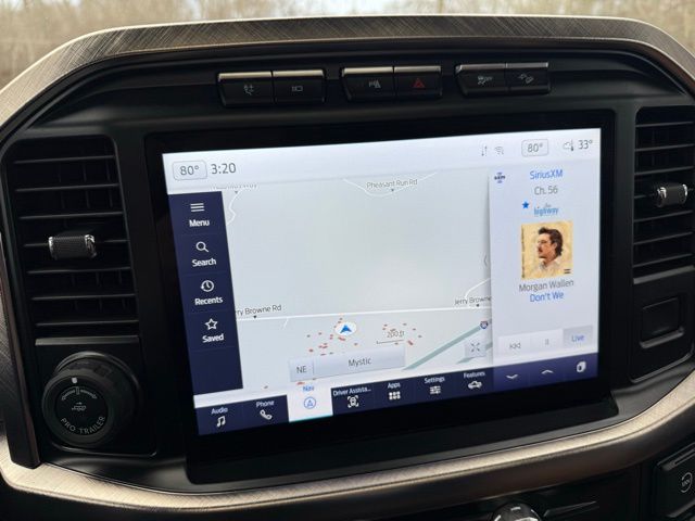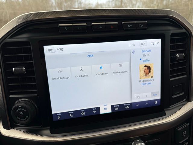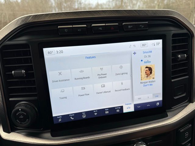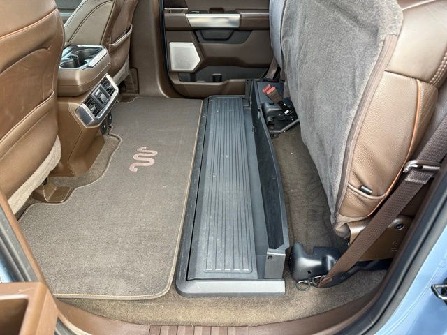 3.5L PowerBoost Full-Hybrid V6, 4WD, 20" Machined-Aluminum Wheels, 360 Degree Camera, 4-Wheel Disc Brakes, 4x4 FX4 Off-Road Bodyside Decal, 8 Speakers, 8.4 -Inch Display Audio w/ Electrostatic Touchscreen, ABS brakes, Adjustable pedals, Air Conditioning, Alloy wheels, AM/FM radio: SiriusXM with 360L, Auto High-beam Headlights, Auto Start-Stop Removal (DISC), Auto tilt-away steering wheel, Auto-dimming door mirrors, Auto-dimming Rear-View mirror, Automatic temperature control, Bed Utility Package, Bedliner/Ford Factory Spray-In Bedliner, BoxLink, Brake assist, Bright Belt Moldings, Center High-Mounted Stop Lamp CHMSL Camera Removal, Chrome Door Handles w/Body-Color Strap, Chrome Skull Caps on Exterior Mirrors, Class IV Trailer Hitch Receiver, Compass, Delay-off headlights, Driver door bin, Driver vanity mirror, Dual front impact airbags, Dual front side impact airbags, Dual-Pane Paoramic Sunroof, Electronic Locking w/3.31 Axle Ratio, Electronic Stability Control, Emergency communication system: SYNC 4 911 Assist, Equipment Group 601A High, Extended Range 36 Gallon Fuel Tank, Exterior Parking Camera Rear, Fog Lamps, Front & Rear Chrome Bumpers, Front anti-roll bar, Front Bucket Seats, Front Center Armrest, Front dual zone A/C, Front reading lights, Front wheel independent suspension, Fully automatic headlights, FX4 Off-Road Package, Garage door transmitter, Genuine wood console insert, Genuine wood dashboard insert, Genuine wood door panel insert, Heated door mirrors, Heated rear seats, Heated Second Row Seats/Heated Rear Seats, Hill Descent Control, Illuminated entry, Inclination/Intrusion Sensor Removal, Integrated Trailer Brake Controller, King Ranch Chrome Appearance Package, King Ranch Leather Bucket Seats, LED Box Lighting, LED Sideview Mirror Spotlights, Max Trailer Tow Package, Memory seat, Monotube Rear Shocks, Multi-Contour Driver & Passenger Seats, Multicontour Seats w/Active Motion Removal, Occupant sensing airbag, Off-Road Tuned Front Shock Absorbers, Outside temperature display, Overhead airbag, Overhead console, Panic alarm, Passenger door bin, Passenger vanity mirror, Pedal memory, Power door mirrors, Power driver seat, Power passenger seat, Power steering, Power Tailgate, Power windows, Power-Deployable Running Boards, Pro Power Onboard - 7.2KW, Pro Trailer Backup Assist & Pro Trailer Hitch Assist, Radio: B&O Sound System by Bang & Olufsen, Radio: B&O Unleashed Sound System by Bang & Olufsen, Rain sensing wipers, Rear reading lights, Rear seat center armrest, Rear step bumper, Rear window defroster, Remote keyless entry, Rock Crawl Mode, Security system, Speed control, Speed-sensing steering, Split folding rear seat, Steering Wheel Heat Removal (DISC), Steering wheel memory, SYNC 4 w/Enhanced Voice Recognition, Tachometer, Tailgate Step w/Tailgate Work Surface, Telescoping steering wheel, Tilt steering wheel, Tire Pressure Monitoring System, Traction control, Tray Style Floor Liner, Trip computer, Turn signal indicator mirrors, Twin Panel Moonroof, Variably intermittent wipers, Ventilated front seats, Voltmeter, Wheels: 20" Chrome-Like PVD. Odometer is 8898 miles below market average!