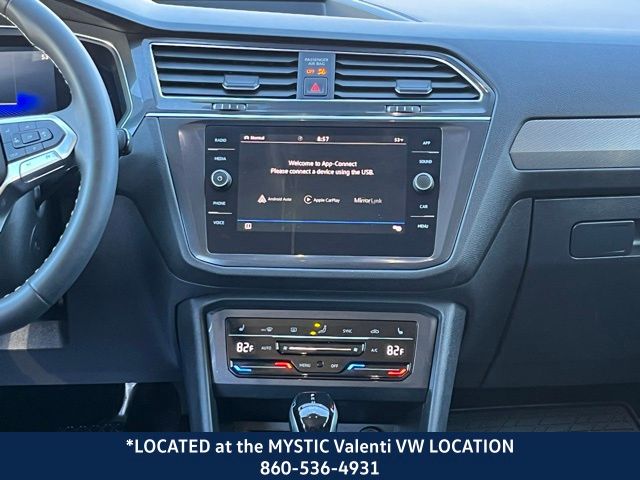VW CERTIFIED 2 Year/24,000 Mile Warranty, Located at our Mystic VW location, AWD, Panoramic Sunroof Package. CARFAX One-Owner. Clean CARFAX. Silver Metallic 2023 Volkswagen Tiguan 2.0T SE AWD 8-Speed Automatic with Tiptronic 2.0L TSI DOHC