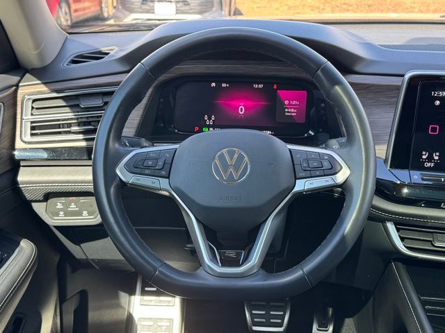 The Atlas has an infotainment system that is easy to use and intuitive, and it allows for swiping and pinch zooming. Apple Car Play is awesome! Surprisingly, some manufacturers have not integrated this feature at this time. The digital instrument panel has a very nice, modern look, and it offers 5 or 6 different views. One of the really cool things about the Atlas- you can display the nav map in the middle of the instrument panel. Additionally, you can make the map bigger and the gauges smaller, which allows you to see more map detail- a really nice option. The car even has an altimeter, which is really cool to me (I’m a pilot by trade). Not so much for my wife…