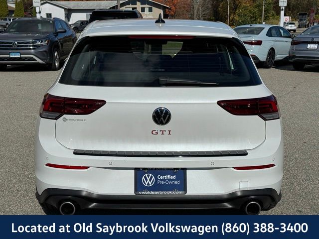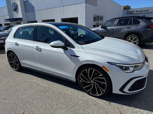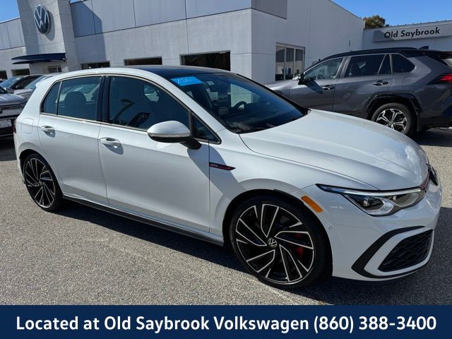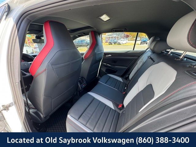 Located at Old Saybrook Volkswagen, VW CERTIFIED 6 Year/74,000 Mile Volkswagen Certified Warranty, Golf GTI Autobahn, 4D Hatchback, 7-Speed DSG Automatic with Tiptronic, Titan Black w/Perforated Vienna Leather Seating Surfaces, 4-Wheel Disc Brakes, Adaptive suspension, Brake assist, Electronic Stability Control, Emergency communication system: VW Car-Net Safe & Secure 5-year, Exterior Parking Camera Rear, Forward collision: FCW w/Autonomous Emergency Braking mitigation, Four wheel independent suspension, Heads-Up Display, Heated & Actively Ventilated Front Top Sport Seats, Heated front seats, Heated rear seats, Heated steering wheel, Illuminated entry, Leather steering wheel, Navigation System, Outside temperature display, Perforated Vienna Leather Seating Surfaces, Power moonroof: Panoramic, Power passenger seat, Radio: MIB3 Discover Pro w/10" Touchscreen Navi, Rain sensing wipers, Rear window wiper, Speed-sensing steering, Traction control, Ventilated front seats, Wheels: 19" 2-Tone Diamond-Turned Alloy. Clean CARFAX. Certified. Opal White Pearl 2024 Volkswagen Golf GTI Autobahn FWD 7-Speed DSG Automatic with Tiptronic 2.0L TSI DOHC