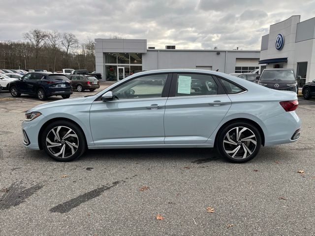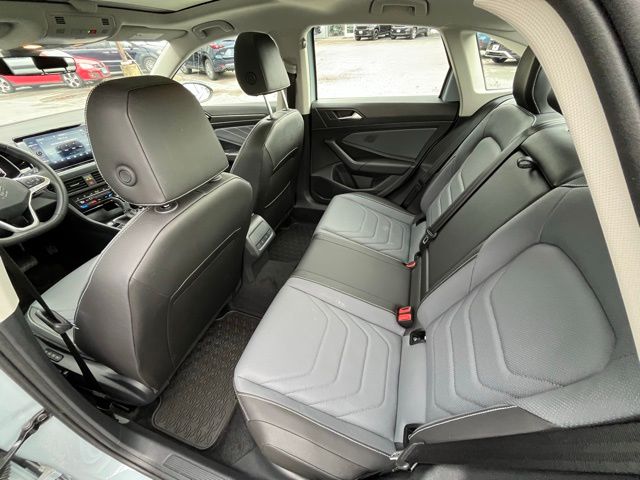 VW CERTIFIED 2 Year/24,000 Mile Warranty, Located at our Mystic VW location, Jetta 1.5T SEL, 4D Sedan, Black Leather, Memory seat, Navigation System, Power driver seat, Power moonroof: Panoramic, Radio: MIB3 Discover Media w/8" Touchscreen Nav. CARFAX One-Owner. Clean CARFAX. Certified. Gray 2025 Volkswagen Jetta 1.5T SEL FWD 8-Speed Automatic with Tiptronic 1.5L I-4 DI DOHC Turbocharged