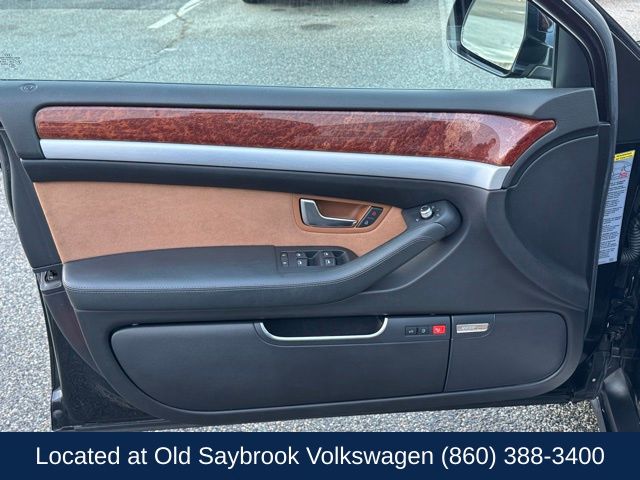 Located at Old Saybrook Volkswagen, Nationwide Delivery Available!!, A8 L 4.2 quattro, 4D Sedan, 4.2L V8 FSI DOHC, quattro, Amaretto w/Premium Valcona Full Leather Seat Upholstery, 12 Speakers, 4-Wheel Disc Brakes, Adaptive suspension, AM/FM radio: SIRIUS, Auto-leveling suspension, Brake assist, Electronic Stability Control, Exterior Parking Camera Rear, Four wheel independent suspension, Front dual zone A/C, Front Heated Comfort Seats, Head restraints memory, Heated front seats, Heated rear seats, High intensity discharge headlights: Bi-xenon, HVAC memory, Illuminated entry, Memory seat, Navigation System, Power driver seat, Power moonroof, Premium Valcona Full Leather Seat Upholstery, Rear air conditioning, Rear dual zone A/C, Speed-sensing steering. Clean CARFAX. Phantom Black Pearl Effect 2010 Audi A8 L 4.2 quattro quattro 6-Speed Automatic with Tiptronic 4.2L V8 FSI DOHC