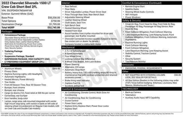 8-Speed Automatic, 4WD, Black Cloth, 10-Way Power Driver Seat w/Lumbar, 12.3 Multicolor Reconfigurable Digital Display, 120-Volt Bed Mounted Power Outlet, 120-Volt Instrument Panel Power Outlet, ABS brakes, All-Star Edition, Apple CarPlay/Android Auto, Auto-Locking Rear Differential, Bluetooth® For Phone, Chevrolet Connected Access Capable, Chrome Mirror Caps, Color-Keyed Carpeting Floor Covering, Compass, Convenience Package, Deep-Tinted Glass, Dual front impact airbags, Dual front side impact airbags, Dual Rear USB Ports (Charge Only), Dual-Zone Automatic Climate Control, Electrical Steering Column Lock, Electronic Cruise Control, Front Frame-Mounted Black Recovery Hooks, HD Rear Vision Camera, Heated door mirrors, Heated Driver & Front Outboard Passenger Seats, Heated Steering Wheel, Hitch Guidance, Keyless Open & Start, Leather Wrapped Steering Wheel, LED Cargo Area Lighting, Manual Tilt/Telescoping Steering Column, OnStar & Chevrolet Connected Services Capable, Power driver seat, Power Front Windows w/Driver Express Up/Down, Power Front Windows w/Passenger Express Down, Power Rear Windows w/Express Down, Preferred Equipment Group 2FL, Rear 60/40 Folding Bench Seat (Folds Up), Remote keyless entry, Remote Vehicle Starter System, SiriusXM w/360L, Speed control, Steering Wheel Audio Controls, Tilt steering wheel, Trailering Package, Wheels: 20 x 9 Painted Aluminum, Wi-Fi Hot Spot Capable, Wireless Phone Projection. CARFAX One-Owner. Clean CARFAX.