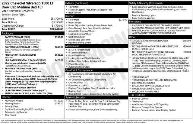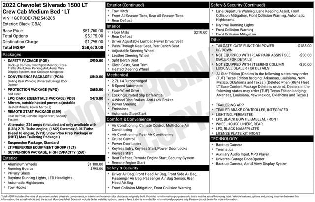 8-Speed Automatic, 4WD, Black Cloth, 12.3 Multicolor Reconfigurable Digital Display, 40/20/40 Front Split-Bench Seat, 6-Speaker Audio System, 6 Rectangular Chrome Tubular Assist Steps (LPO), ABS brakes, AM/FM radio: SiriusXM with 360L, Apple CarPlay/Android Auto, Assist Step & Tonneau Package III (LPO), Black Name Plates (LPO), Convenience Package II, Dark Essentials Package (LPO), Dual front impact airbags, Dual front side impact airbags, Dual-Zone Automatic Climate Control, EZ Lift Power Lock & Release Tailgate, Hard-Folding Tonneau Cover (LPO), HD Surround Vision, Heated steering wheel, Hitch Guidance w/Hitch View, Integrated Trailer Brake Controller, Perimeter Lighting, Power door mirrors, Power driver seat, Power Sliding Rear Window w/Rear Defogger, Power Tailgate, Power windows, Radio: Chevrolet Infotainment 3 Premium System, Rear Cross Traffic Alert-Braking, Rear Park Assist, Rear Pedestrian Detection, Remote keyless entry, Safety Package, Speed control, Split folding rear seat, Tilt steering wheel, Trailer Camera Provisions, Trailer Side Blind Zone Alert, Trailering App, Universal Home Remote, Wheels: 20 x 9 Painted Aluminum. CARFAX One-Owner. Clean CARFAX.