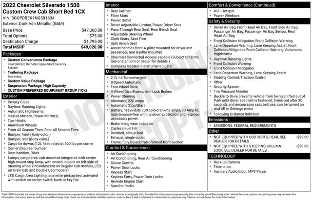 8-Speed Automatic, 4WD, Black Cloth, 40/20/40 Front Split-Bench Seat, 6-Speaker Audio System, ABS brakes, Air Conditioning, Alloy wheels, AM/FM radio: SiriusXM/Satellite Radio, Apple CarPlay/Android Auto, Dual front impact airbags, Dual front side impact airbags, Power Front Windows w/Driver Express Up/Down, Radio: Chevrolet Infotainment 3 System, Remote Keyless Entry, Remote Vehicle Starter System, Speed control, Tilt steering wheel. CARFAX One-Owner. Clean CARFAX.