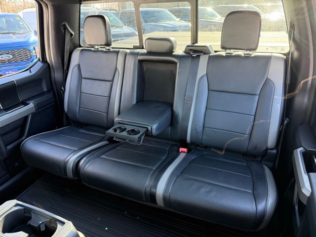 4WD, 10-Way Power Driver & Passenger Seats, 17" Cast Aluminum Wheels, 17" Forged Aluminum Bead-Lock Capable Wheels, 4-Wheel Disc Brakes, 7 Speakers, 8-Way Power Driver's Seat w/Power Lumbar, 8.4 -Inch Display Audio w/ Electrostatic Touchscreen, ABS brakes, Air Conditioning, Alloy wheels, AM/FM radio: SiriusXM/Satellite Radio, Auto-dimming Rear-View mirror, Brake assist, CD player, Compass, Delay-off headlights, Driver door bin, Driver vanity mirror, Dual front impact airbags, Dual front side impact airbags, Dual-Pane Paoramic Sunroof, Electronic Locking w/4.10 Axle Ratio, Electronic Stability Control, Emergency communication system: 911 Assist, Equipment Group 801A Mid, Exterior Parking Camera Rear, Fog Lamps, Front anti-roll bar, Front Bucket Seats, Front Center Armrest, Front reading lights, Front wheel independent suspension, Fully automatic headlights, GVWR: 7,050 lbs Payload Package, Heated Leather 40/Console/40 Front Seats, Illuminated entry, KICKER Subwoofer (Pre-Installed), Leather steering wheel, Occupant sensing airbag, Outside temperature display, Overhead airbag, Overhead console, Panic alarm, Passenger door bin, Passenger vanity mirror, Power door mirrors, Power driver seat, Power steering, Power windows, Power-Adjustable Pedals, Power-Sliding Rear Window, Radio: Single-CD/SiriusXM w/7 Speakers, Rear Parking Sensors, Rear reading lights, Rear step bumper, Rear window defroster, Remote keyless entry, Security system, Speed control, Speed-sensing steering, Split folding rear seat, Spray-In Bedliner (Pre-Installed), SYNC, SYNC 3, Tachometer, Tailgate Applique FORD, Tailgate Step w/Tailgate Lift Assist, Telescoping steering wheel, Tilt steering wheel, Tire Pressure Monitoring System, Traction control, Trip computer, Twin Panel Moonroof, Unique Cloth Trim Seats, Variably intermittent wipers, Voice-Activated Touchscreen Navigation System. Odometer is 7570 miles below market average! Clean CARFAX.