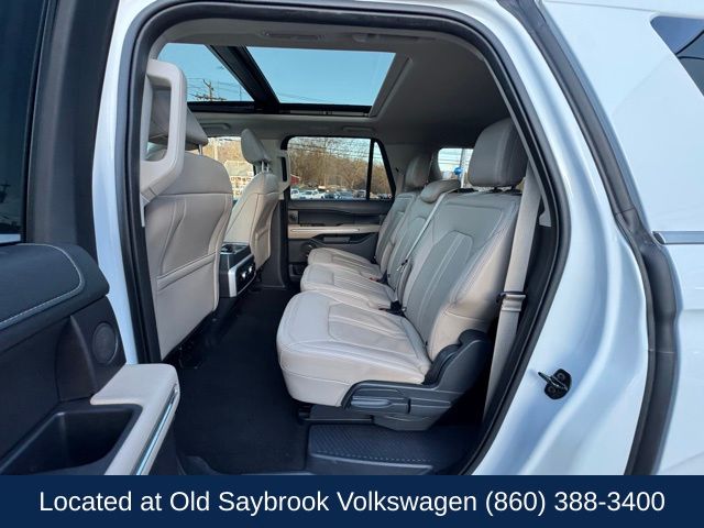 Located at Old Saybrook Volkswagen, Nationwide Delivery Available!!, Expedition Max Limited, 4D Sport Utility, EcoBoost 3.5L V6 GTDi DOHC 24V Twin Turbocharged, 4WD, Sandstone Leather, 12 Speakers, 2nd Row Power-Folding 40/20/40 Leather Bench Seat, 3rd row seats: split-bench, 4-Wheel Disc Brakes, AM/FM radio: SiriusXM with 360L, Automatic temperature control, Brake assist, Electronic Stability Control, Emergency communication system: SYNC 4 911 Assist, Equipment Group 301A Mid Package, Exterior Parking Camera Rear, Four wheel independent suspension, Heated & Ventilated Leather Front Captain's Chairs, Heated door mirrors, Heated front seats, Heated rear seats, Heated steering wheel, Illuminated entry, Leather steering wheel, Memory seat, Navigation system: Connected Navigation, Pedal memory, Power driver seat, Power Liftgate, Power moonroof, Radio: B&O Sound System by Bang & Olufsen, Rear air conditioning, Reclining 3rd row seat, SiriusXM w/360L, Steering wheel memory, SYNC 4 w/Enhanced Voice Recognition, Ventilated front seats, Wheels: 20" Bright Machined Aluminum. CARFAX One-Owner. Clean CARFAX. Oxford White 2024 Ford Expedition Max Limited 4WD 10-Speed Automatic EcoBoost 3.5L V6 GTDi DOHC 24V Twin Turbocharged