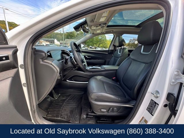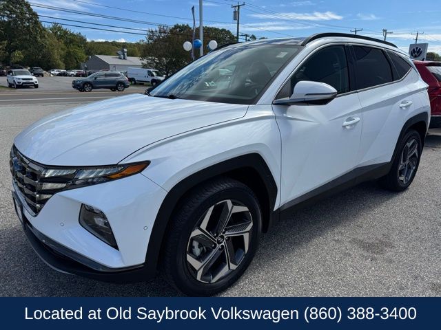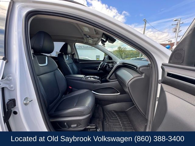 Located at Old Saybrook Volkswagen, Nationwide Delivery Available!!, Tucson Plug-In Hybrid Limited, 4D Sport Utility, I4, AWD, 4-Wheel Disc Brakes, Apple CarPlay & Android Auto, Brake assist, Electronic Stability Control, Emergency communication system: Blue Link Connected Car Service (3-year complimentary subscription), Four wheel independent suspension, Heated & Ventilated Front Bucket Seats, Heated front seats, Heated rear seats, Heated steering wheel, Memory seat, Navigation System, Option Group 01, Power driver seat, Power Liftgate, Power moonroof, Power passenger seat, Radio: Bose Premium w/AM/FM/HD/SiriusXM Audio System, Traction control, Ventilated front seats, Wheels: 19" x 7.5J Alloy. Clean CARFAX. White Pearl 2022 Hyundai Tucson Plug-In Hybrid Limited AWD 6-Speed Automatic I4