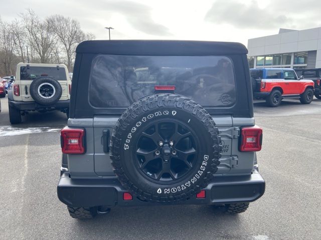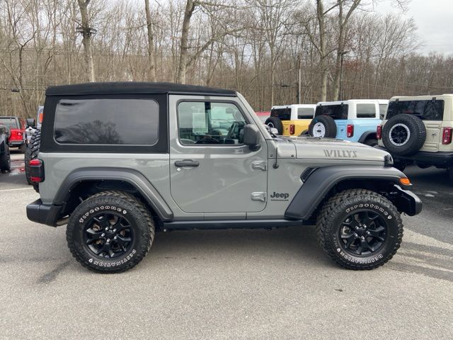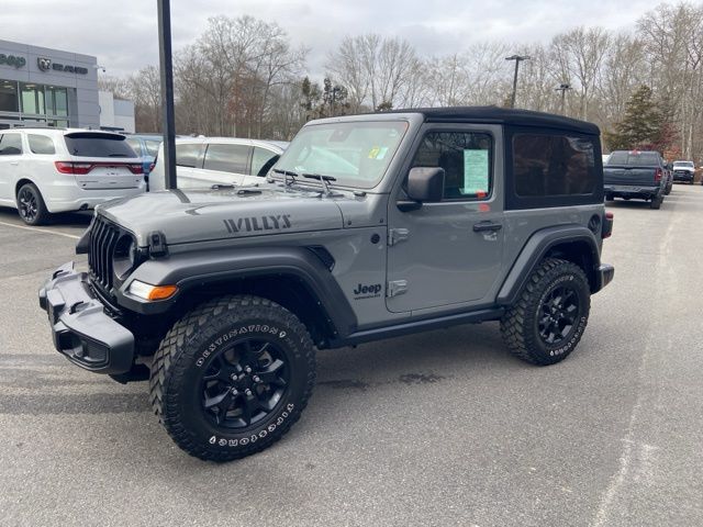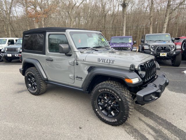 Wrangler Willys, 2D Sport Utility, 2.0L I4 DOHC, 8-Speed Automatic, 4WD, Sting-Gray Clearcoat, Black Cloth, 4-Wheel Drive Swing Gate Decal, 7.0" Touchscreen Display, 97 MPH Vehicle Max Speed Calibration, Advanced Brake Assist, Advanced Safety Group, Air Conditioning, Air Conditioning w/Auto Temperature Control, Air Filtering, Anti-Spin Differential Rear Axle, Apple CarPlay, Auto High Beam Headlamp Control, Automatic Headlamps, Black Grille, Black Trail Rated Badge, Blind Spot & Cross Path Detection, Bridgestone Brand Tires, Cluster 7.0" TFT Color Display, Cold Weather Group, Convenience Group, Deep Tint Sunscreen Windows, For More Info, Call 800-643-2112, Front 1-Touch Down Power Windows, Front Door Locks 2-Door Passive Entry, Front LED Fog Lamps, Full Speed Forward Collision Warning Plus, Global Telematics Box Module (TBM), Google Android Auto, GPS Antenna Input, Heated Front Seats, Heated Steering Wheel, Injection Molded Black Rear Bumper, Integrated Center Stack Radio, Integrated Voice Command w/Bluetooth, Leather Wrapped Steering Wheel, LED Headlamp & Fog Lamp Group, LED Premium Reflector Headlamps, LED Taillamps, Matte Black Jeep Badge, Mold In Color Bumper w/Gloss Black, MOPAR All-Weather Floor Mats, ParkSense Rear Park Assist System, Power Heated Mirrors, Quick Order Package 22W Willys, R1234YF A/C Refrigerant, Radio: Uconnect 4 w/7" Display, Remote Keyless Entry, Safety Group, Security Alarm, SiriusXM Guardian-Included Trial (B), SiriusXM Radio Service, SiriusXM Satellite Radio, Speed Sensitive Power Locks, Sun Visors w/Illuminated Vanity Mirrors, Technology Group, Universal Garage Door Opener, USB Host Flip, Wheels: 17" x 7.5" Moab Black Aluminum, Willys, Willys Hood Decal. CARFAX One-Owner. Clean CARFAX.