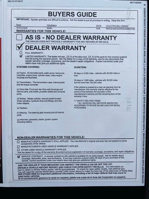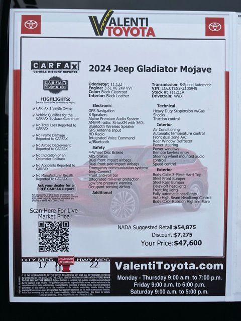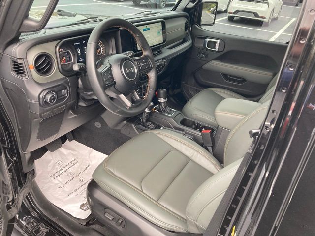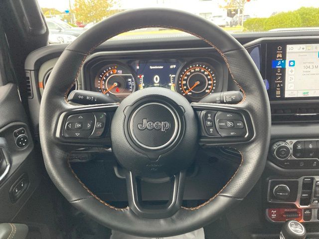 12.3" Touchscreen Display, 4G LTE Wi-Fi Hot Spot, Alexa Built-In, Alloy wheels, Alpine Premium Audio System, Apple CarPlay, Auto High Beam Headlamp Control, Auto-Dimming Rear-View Mirror, Blind Spot & Cross Path Detection, Bluetooth Wireless Speaker, Body Color 3-Piece Hard Top, Body Color Rubicon Highline Flare, Connected Travel & Traffic Services, Connectivity - US/Canada, Emergency/Assistance Call, Freedom Panel Storage Bag, Full Length Floor Console Premium Armrest, Google Android Auto, GPS Antenna Input, GPS Navigation, HD Radio, Heated Front Seats, Heated Steering Wheel, Integrated Center Stack Radio, Integrated Off-Road Camera, Integrated Voice Command w/Bluetooth, Leather Trimmed Bucket Seats, Leather Wrapped Park Brake Handle, Leather Wrapped Shift Knob, Mojave X Package, MOPAR Hardtop Headliner, No Soft Top, ParkSense Rear Park Assist System, Power 4-Way Driver Lumbar Adjust, Power 4-Way Passenger Lumbar Adjust, Power Adjust 8-Way Driver Seat, Power Adjust 8-Way Front Passenger Seat, Premium Door Trim Panel, Quick Order Package 24A Mojave X, Radio: Uconnect 5 Nav w/12.3" Display, Rear Armrest w/Cupholder Seat, Rear Sliding Window, Rear Window Defroster, Rock Protection Sill Rails, SiriusXM Radio Service, SiriusXM w/360L, Steel Front Bumper, Steel Rear Bumper, USB Host Flip, Variably intermittent wipers.