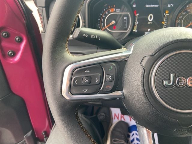 12.3" Touchscreen Display, Apple CarPlay, Apple CarPlay/Android Auto, Auto High Beam Headlamp Control, Blind Spot & Cross Path Detection, Body Color 3-Piece Hard Top, Electronic Stability Control, Freedom Panel Storage Bag, Front dual zone A/C, Google Android Auto, HD Radio, Heated steering wheel, Integrated Voice Command w/Bluetooth, No Soft Top, ParkSense Rear Park Assist System, ParkView Rear Back-Up Camera, Power 4-Way Driver Lumbar Adjust, Power 4-Way Passenger Lumbar Adjust, Power Adjust 8-Way Driver Seat, Power Adjust 8-Way Front Passenger Seat, Power steering, Power windows, Quick Order Package 24G Sahara, Radio: Uconnect 5 w/12.3" Display, Rear Window Defroster, Rear Window Wiper/Washer, Remote keyless entry, Safety Group, Side Steps, Split folding rear seat, Tire Pressure Monitoring System, Wheels: 18" x 7.5" Machine/Painted Gray. CARFAX One-Owner. Clean CARFAX.