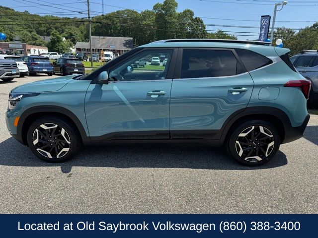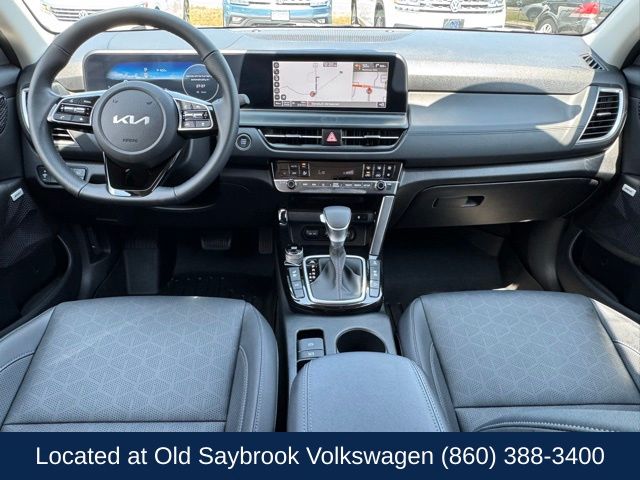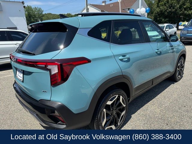 Located at Old Saybrook Volkswagen, Seltos SX, 4D Sport Utility, AWD, Pluton Blue, Black w/Sofino Premium Leatherette Seat Trim, 4-Wheel Disc Brakes, Brake assist, Digital Key, Electronic Stability Control, Exterior Parking Camera Rear, Four wheel independent suspension, Heated Front Bucket Seats, Illuminated entry, Leather steering wheel, Navigation System, Power driver seat, Power Liftgate, Radio: AM/FM/HD/Satellite Display System w/Navigation, Sofino Premium Leatherette Seat Trim, Sport steering wheel, Sunroof, SX Sunroof Package, Ventilated Front Seats, Wheels: 18" Alloy w/Machined Finish. CARFAX One-Owner. Clean CARFAX. Pluton Blue 2024 Kia Seltos SX AWD 8-Speed Automatic I4