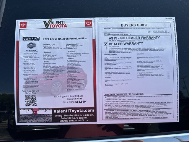 2.5L I4, AWD, Black w/NuLuxe Seat Trim, 8-Way Power Adjustable Driver & Passenger Seat, ABS brakes, Active Cruise Control, Alloy wheels, AM/FM radio: SiriusXM, Cold Area Package, Compass, Convenience Package, Electronic Stability Control, Exterior Parking Camera Rear, Front dual zone A/C, Heated & Ventilated Front Bucket Seats, Heated door mirrors, Heated front seats, Illuminated entry, Leather Seat Trim, Low tire pressure warning, Memory seat, Power driver seat, Power Liftgate, Power moonroof, Premium Plus Package, Radio: Lexus Interface w/14" HD Touchscreen Display, Rain sensing wipers, Remote keyless entry, Technology Package, Traction control, Variably intermittent wipers.