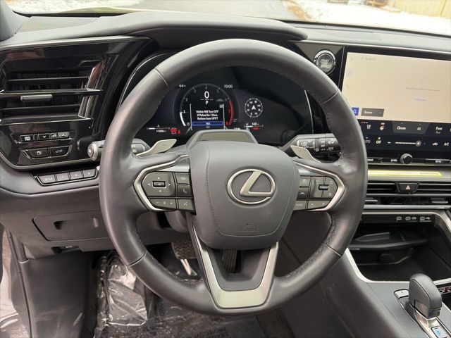 3rd row seats: split-bench, ABS brakes, Alloy wheels, Cold Weather Package, Convenience Package, Digital Key, Electronic Stability Control, Exterior Parking Camera Rear, Front dual zone A/C, Heated door mirrors, Heated front seats, Illuminated entry, Intelligent Parking Assist, Lane Keeping System, Leather Heated Steering Wheel w/Paddles, Low tire pressure warning, Memory seat, Navigation System, NuLuxe Pattern Perforated Seat Trim, Peripheral Monitor Camera, Power driver seat, Power Liftgate, Power moonroof, Pre-Collision System, Radio: Lexus Interface, Rain sensing wipers, Rear Side Monitor, Rear window wiper, Remote keyless entry, Standard Normal Speed Meter, Technology Package, Traction control, Variably intermittent wipers, Ventilated front seats, Wiper & Window Deicer.