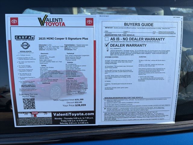 Discover the perfect blend of style, performance, and convenience in this exceptional 2025 MINI Cooper S Signature Plus. With its captivating Blue exterior and a meticulously crafted interior, this MINI is poised to elevate your driving experience.