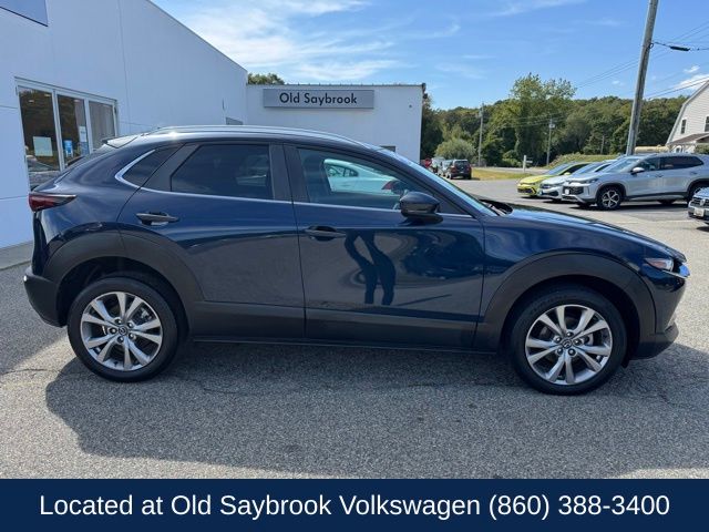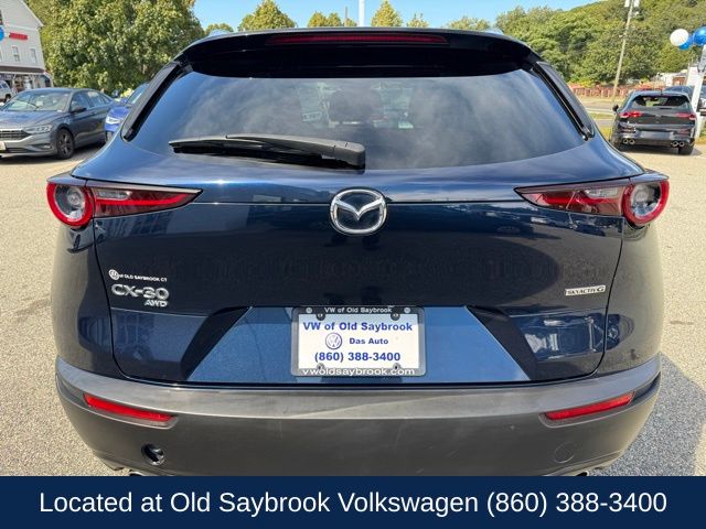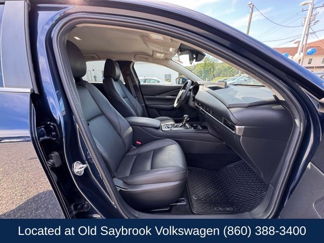 Located at Old Saybrook Volkswagen, Nationwide Delivery Available!!, CX-30 2.5 S Select Package, 4D Sport Utility, SKYACTIV® 2.5L 4-Cylinder DOHC 16V, AWD, Black w/Leather Seat Trim, 4-Wheel Disc Brakes, Brake assist, Electronic Stability Control, Emergency communication system: Mazda Connected Services (Automatic 911 Dialing), Exterior Parking Camera Rear, Front dual zone A/C, Illuminated entry, Leather Shift Knob, Leather steering wheel, Leatherette Seat Trim, MAZDA CONNECT Infotainment System, Radio: AM/FM/HD Audio System, Rain sensing wipers, Rear seat center armrest, Rear window wiper, Steering wheel mounted audio controls, Traction control, Variably intermittent wipers, Wheels: 18" x 7J Aluminum Alloy. CARFAX One-Owner. Deep Crystal Blue Mica 2022 Mazda CX-30 2.5 S Select Package AWD 6-Speed Automatic SKYACTIV® 2.5L 4-Cylinder DOHC 16V