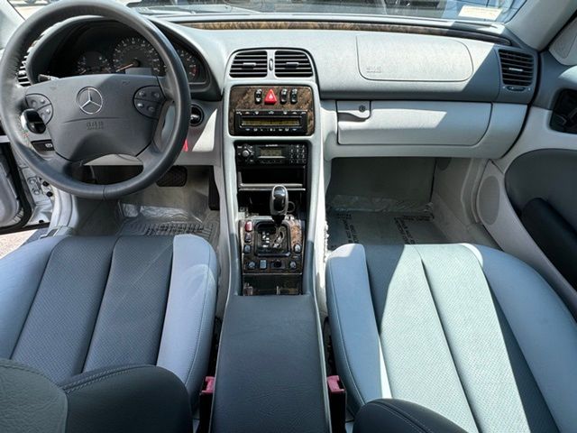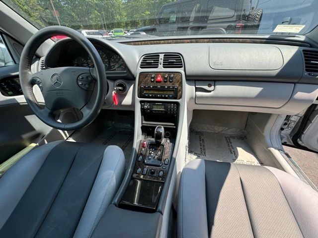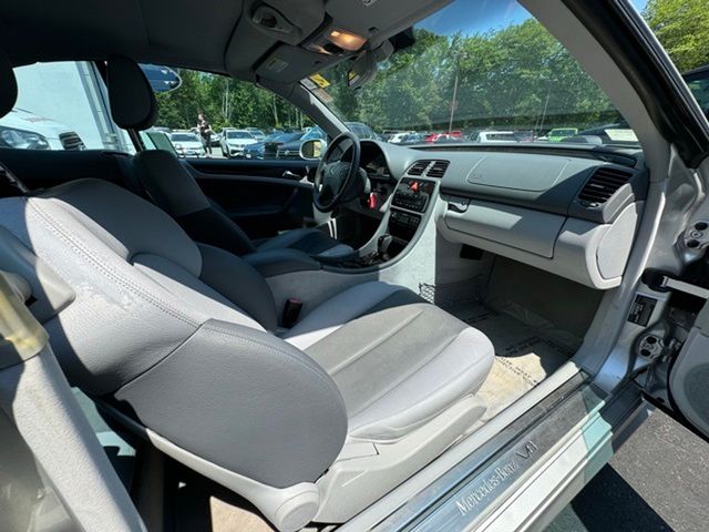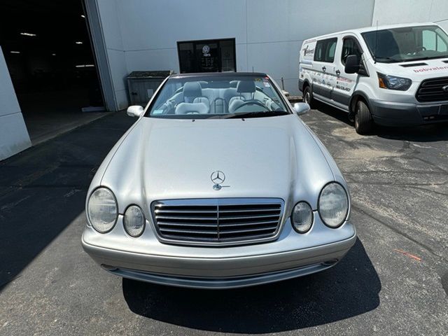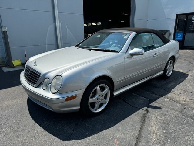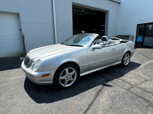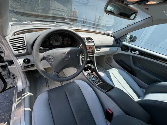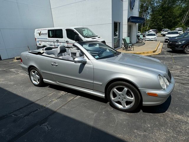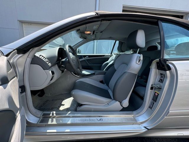 CLK 430, 2D Convertible, 4.3L V8 SMPI SOHC, 5-Speed Automatic with Overdrive, 17" Superior Alloy Wheels, 4-Wheel Disc Brakes, Alloy wheels, Brake assist, Convertible roof lining, Electronic Stability Control, Four wheel independent suspension, Genuine wood console insert, Glass rear window, Illuminated entry, Leather Seat Trim, Power adjustable front head restraints, Power adjustable rear head restraints. Clean CARFAX. Brilliant Silver Metallic 2003 Mercedes-Benz CLK CLK 430 RWD 5-Speed Automatic with Overdrive 4.3L V8 SMPI SOHC