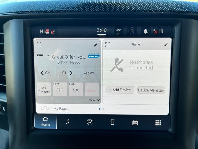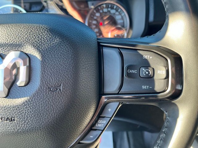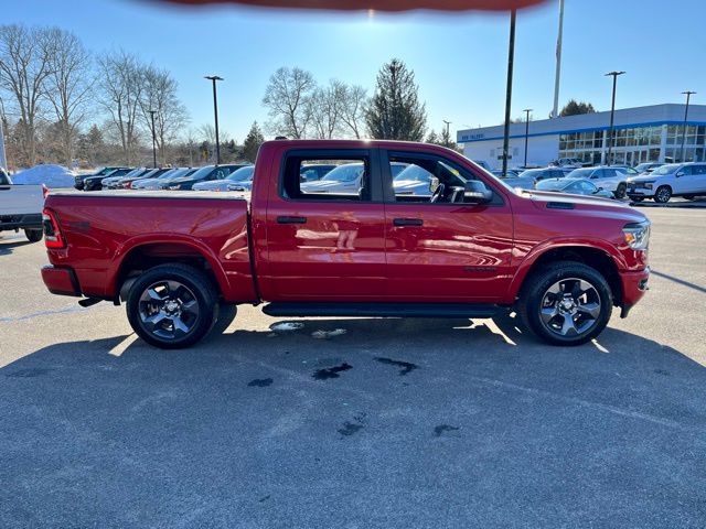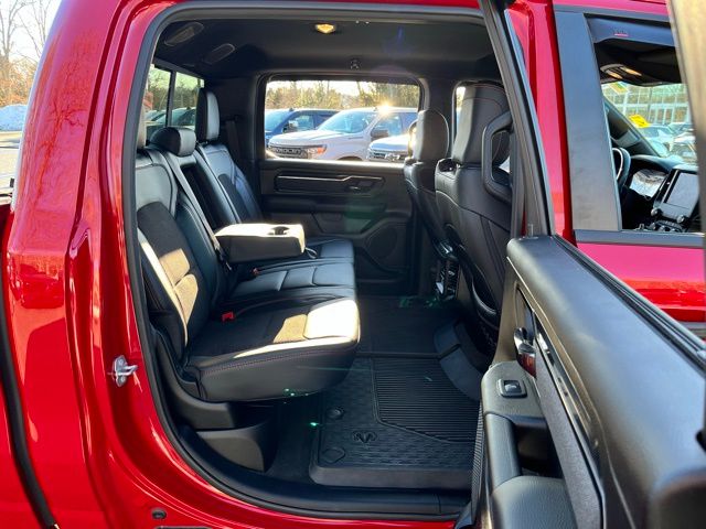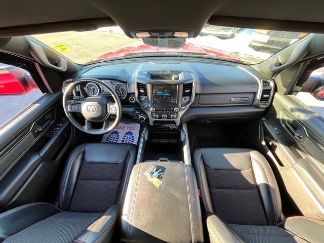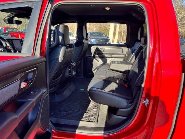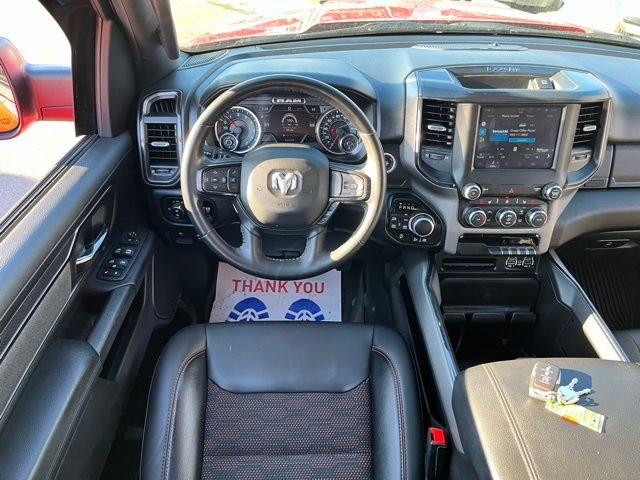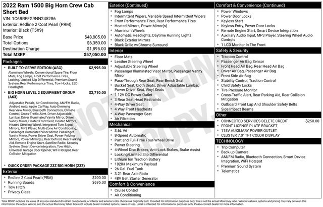 1500 Big Horn/Lone Star, 4D Crew Cab, 3.6L V6 24V VVT, 8-Speed Automatic, 4WD, Redline 2 Coat Pearl, Black Cloth, 115V Auxiliary Power Outlet, 115V Auxiliary Rear Power Outlet, 20" x 9" Aluminum Wheels, 2nd Row In Floor Storage Bins, 3 Rear Seat Head Restraints, 4 Way Front Headrests, 400W Inverter, 4G LTE Wi-Fi Hot Spot, 8.4" Touchscreen Display, 9 Amplified Speakers w/Subwoofer, Air Conditioning ATC w/Dual Zone Control, Apple CarPlay, Auto-Dimming Exterior Driver Mirror, Auto-Dimming Rear-View Mirror, Big Horn Badge, Big Horn Level 2 Equipment Group, Black Door Handles, Black Exterior Mirrors, Black Exterior Truck Badging, Black Front Bumper, Black Headlamp Bezels, Black Onyx Interior Accent, Black Premium Power Mirrors, Black Rear Bumper, Bluetooth Handsfree Phone & Audio, Body Color Fender Flares, Bucket Seats, Built-To-Serve Edition, Built-To-Serve Edition I/P Badge, Center Console Parts Module, Class IV Receiver Hitch, Cluster 7.0" TFT Color Display, Connectivity - US/Canada, Convex Wide-Angle Mirror Insert, Delete LED Lamp - Floor Console Bin, Dual Exhaust w/Black Tips, E-Locker Rear Axle, Exterior Mirrors Courtesy Lamps, Exterior Mirrors w/Heating Element, Exterior Mirrors w/Supplemental Signals, Falken Brand Tires, For Details, Visit DriveUconnect.com, Front Extra HD Shock Absorbers, Front LED Fog Lamps, Front Seat Back Map Pockets, Full Length Floor Console, Global Telematics Box Module (TBM), Glove Box Lamp, Google Android Auto, GPS Antenna Input, Grille Surround 1 Black Texture 1 Black, Heated Front Seats, Heated Steering Wheel, Hill Descent Control, Integrated Center Stack Radio, LED Reflector Headlamps, LED Taillamps, Manual Adjust 4-Way Front Passenger Seat, Media Hub w/2 Charge Only USBs, MOPAR Front & Rear Rubber Floor Mats, MOPAR Lockable Console Storage, ParkSense Front/Rear Park Assist w/Stop, Power 2-Way Driver Lumbar Adjust, Power 4-Way Driver Lumbar Adjust, Power 8-Way Driver Seat, Power Adjustable Pedals, Power-Folding Mirrors, Premium Cloth/Vinyl Bucket Seats, Quick Order Package 23Z Big Horn, Radio: Uconnect 5 W w/8.4" Display, Raised Ride Height, RAM Grille Badge - Black, Rear 60/40 Folding Seat, Rear Dome w/On/Off Switch Lamp, Rear Extra HD Shock Absorbers, Rear Power Sliding Window, Rear Window Defroster, Remote Start System, Security Alarm, SiriusXM Radio Service, SiriusXM Satellite Radio, Sun Visors w/Illuminated Vanity Mirrors, Tow Hooks, Universal Garage Door Opener, US Flag Decal, USB Host Flip. CARFAX One-Owner.