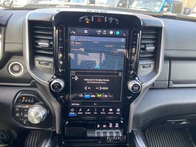 1500 Laramie, 4D Crew Cab, HEMI 5.7L V8 Multi Displacement VVT eTorque, 8-Speed Automatic, 4WD, Granite Crystal Metallic Clearcoat, Black Leather, #1 Seat Foam Cushion, 3 Rear Seat Head Restraints, 4 Way Front Headrests, Accent Color Door Handles, Accent Color Premium Power Mirrors, Adaptive Cruise Control w/Stop & Go, Advanced Safety Group, Auto High Beam Headlamp Control, Auto-Dimming Exterior Driver Mirror, Bed Utility Group, Black Exterior Truck Badging, Black Headlamp Bezels, Black Interior Accents, Black Painted Exterior Mirrors Caps, Body Color Front Bumper, Body Color Rear Bumper w/Step Pads, Bucket Seats, Center Console Parts Module, Convex Wide-Angle Exterior Mirror Insert, Driver Seat Memory, Dual Exhaust w/Black Tips, Exterior Mirrors Courtesy Lamps, Exterior Mirrors w/Heating Element, Exterior Mirrors w/Memory, Exterior Mirrors w/Supplemental Signals, Front Seat Back Map Pockets, Full Length Upgraded Floor Console, GPS Navigation, Grille Surround 3 Black Texture 2 Black, Heated Front Seats, Heated Steering Wheel, Lane Keep Assist, Leather Trimmed Bucket Seats, MOPAR 4 Adjustable Cargo Tie-Down Hooks, MOPAR Spray In Bedliner, Night Edition, Parallel & Perp Park Assist w/Stop, Pedestrian Emergency Braking, Pick-Up Box Lighting, Power 2-Way Driver Lumbar Adjust, Power 2-Way Passenger Lumbar Adjust, Power 8-Way Driver & Passenger Seats, Power-Folding Mirrors, RAM Grille Badge - Black, Rear 60/40 Folding Seat, Sport Performance Hood, Surround View Camera System, Tailgate Ajar Warning Lamp, Ventilated Front Seats, Wheels: 22" x 9" Forged Aluminum. Odometer is 1244 miles below market average! CARFAX One-Owner.