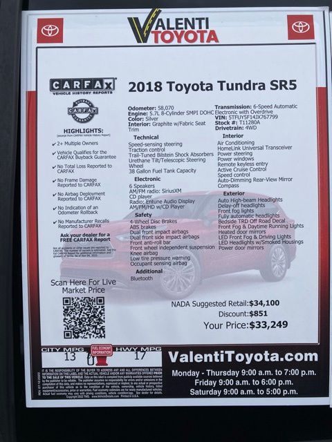 Bluetooth, 4WD, Graphite w/Fabric Seat Trim, 38 Gallon Fuel Tank Capacity, ABS brakes, Active Cruise Control, Anti-Theft Immobilizer w/Alarm, Auto-Dimming Rear-View Mirror, Bedside TRD Off Road Decal, Compass, Electronic Stability Control, Fabric Seat Trim w/TRD Off Road Package, Front Bucket Seats, Heated door mirrors, HomeLink Universal Transceiver, Illuminated entry, Illuminated Entry System, LED Front Fog & Driving Lights, LED Headlights w/Smoked Housings, Low tire pressure warning, Rear Side Privacy Glass, Rear Under-Seat Storage Compartment, Remote keyless entry, Sliding Rear Window w/Privacy Glass, SR5 Upgrade Package, Traction control, Trail-Tuned Bilstein Shock Absorbers, TRD Off Road Floor Mats, TRD Off Road Package, Urethane Tilt/Telescopic Steering Wheel, Variably intermittent wipers, Wheels: 18" x 8J Split 5-Spoke TRD Off Road Alloy.
