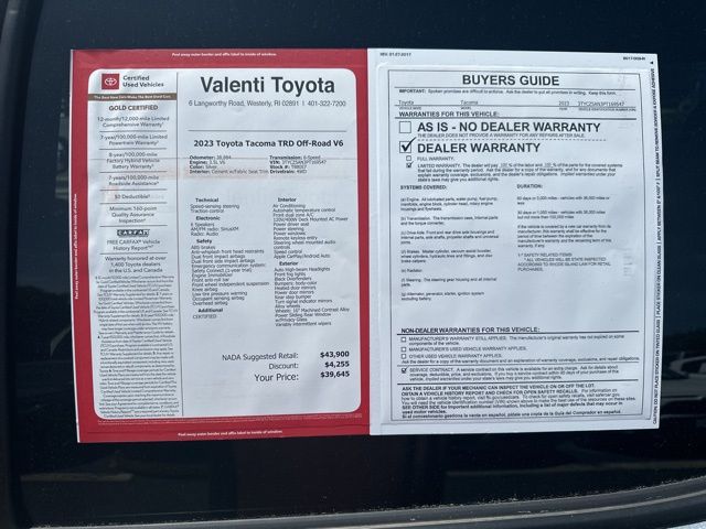 CERTIFIED, 4WD, 120V/400W Deck Mounted AC Power, ABS brakes, Alloy wheels, AM/FM radio: SiriusXM, Apple CarPlay/Android Auto, Black Overfenders, Electronic Stability Control, Engine Immobilizer, Exterior Parking Camera Rear, Front dual zone A/C, Heated door mirrors, Illuminated entry, Low tire pressure warning, Power driver seat, Power Sliding Rear Window w/Privacy Glass, Remote keyless entry, Traction control, TRD Off Road Package, Variably intermittent wipers.