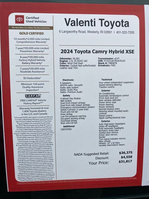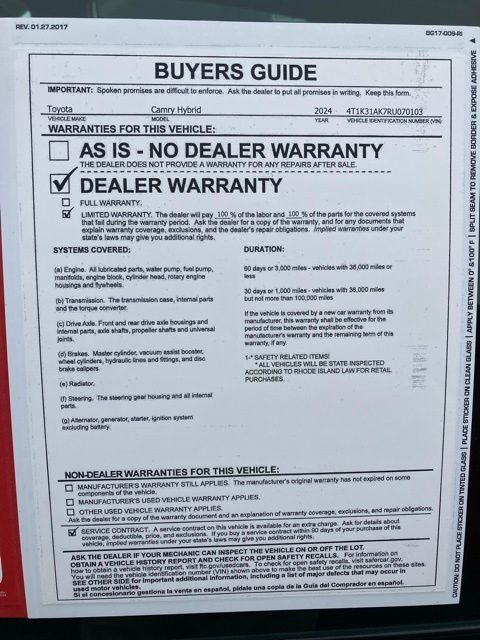 Please call or email to confirm availability and location as we have multiple dealerships.Family owned and operated for over 95 years! Come check out this or any of our huge selection Pre-Owned vehicles at our beautiful showroom in Westerly RI. Or visit us on the web at www.bobvalenti.com or call us at 1-800-699-2571.
