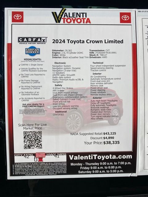 Apple CarPlay/Android Auto, Exterior Parking Camera Rear, Heated front seats, Heated rear seats, Limited Package, Memory seat, Navigation System, Power steering, Radio: Premium Audio w/JBL & Navigation, Rain sensing wipers, Remote keyless entry, Variably intermittent wipers, Ventilated front seats.