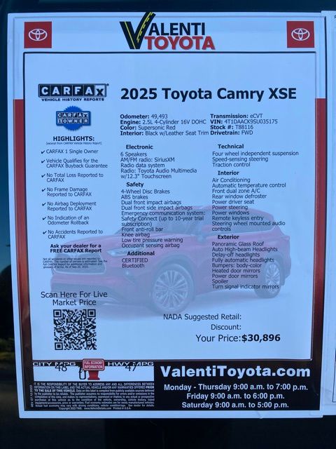 Bluetooth, 2.5L 4-Cylinder 16V DOHC, Black w/Leather Seat Trim, Apple CarPlay/Android Auto, Exterior Parking Camera Rear, Heated Front Bucket Seats, Panoramic Glass Roof, Power driver seat, Remote keyless entry, Variably intermittent wipers, Wheels: 19" Smoke Gray & Black-Finished Alloy.
