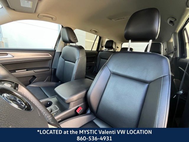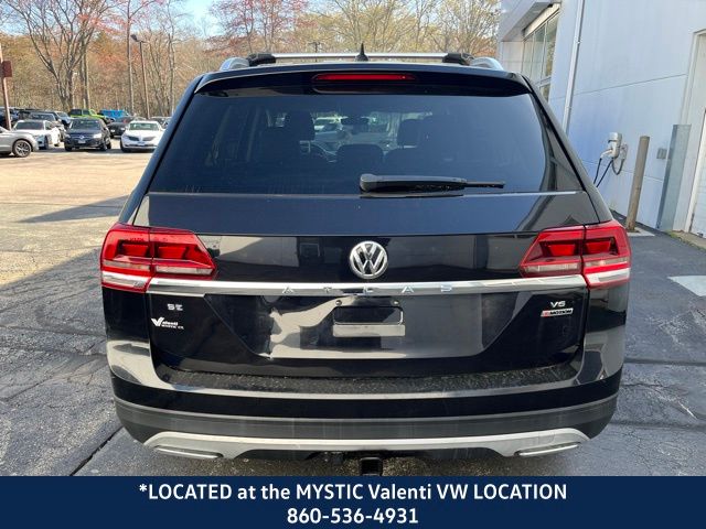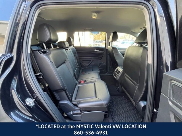 Located at our Mystic VW location, Atlas 3.6L V6 SE w/Technology, 4D Sport Utility, 3.6L VR6, AWD, Titan Black Premium Synthetic, Towing Package. Deep Black 2019 Volkswagen Atlas 3.6L V6 SE w/Technology AWD 8-Speed Automatic with Tiptronic 3.6L VR6