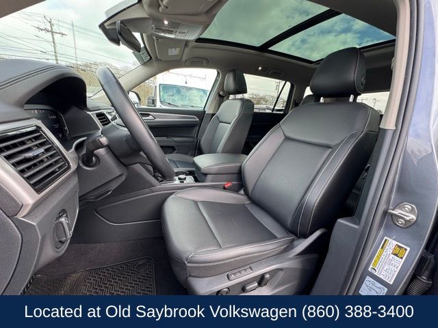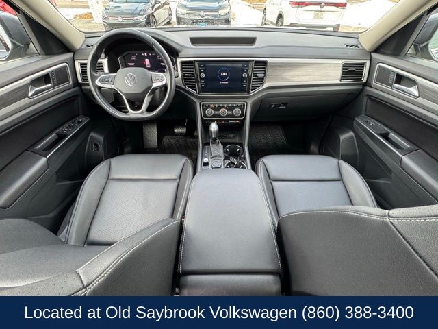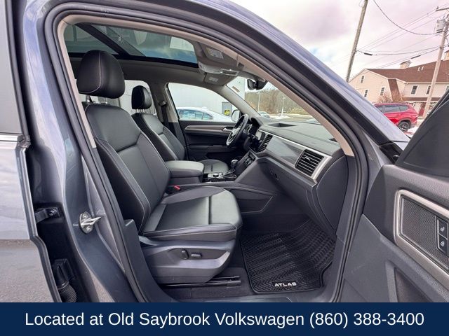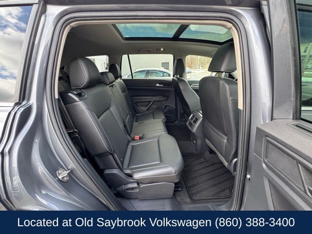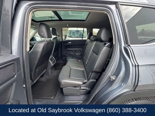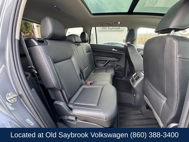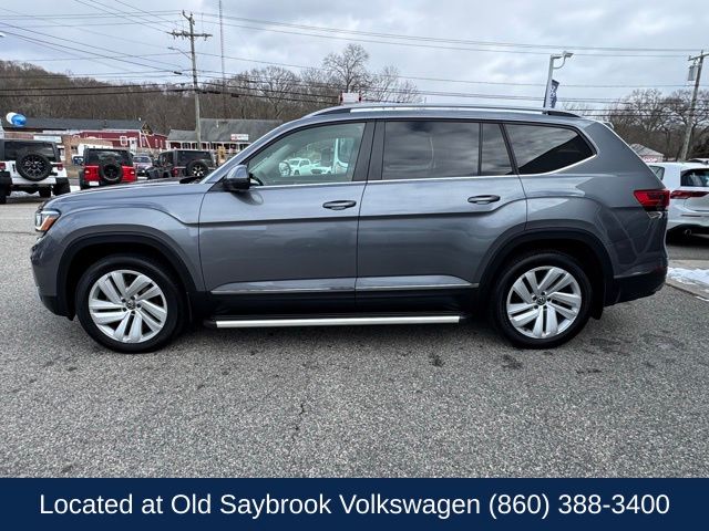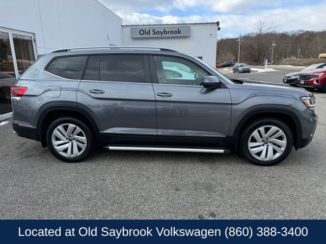 Located at Old Saybrook Volkswagen, Atlas SEL, 4D Sport Utility, 3.6L V6, 8-Speed Automatic with Tiptronic, AWD, Titan Black w/Perforated V-Tex Leatherette Seating Surfaces, 3rd row seats: split-bench, 4-Wheel Disc Brakes, Atlas Adventure Package, Base Carrier Bars Roof Rack (Set of 2), Brake assist, Electronic Stability Control, Exterior Parking Camera Rear, Four wheel independent suspension, Heated Comfort Front Bucket Seats, Heated steering wheel, Heavy Duty Trunk Liner w/VW CarGo Blocks, Illuminated entry, Memory seat, Navigation System, Power driver seat, Power moonroof, Radio data system, Radio: MIB3 Discover Media w/8" Touchscreen Navigation, Side Steps (Set of 2), Trailer Hitch Extras, Wheel Splash Guards (Set of 4), Wheels: 20" 5-Spoke Silver Alloy. CARFAX One-Owner. Clean CARFAX. Platinum Gray Metallic 2021 Volkswagen Atlas SEL AWD 8-Speed Automatic with Tiptronic 3.6L V6