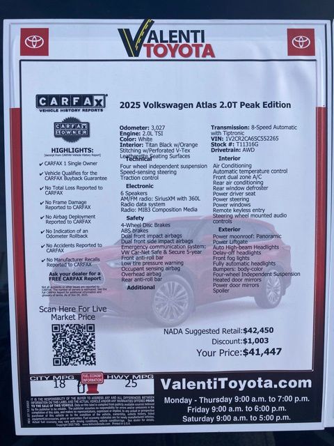 One of the best things about the Atlas is the industry leading warranty- 6 years/72k miles, bumper to bumper. Very few of the competitors even come close to this. And it is manufactured in the USA, which I really like.
