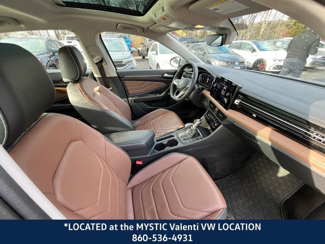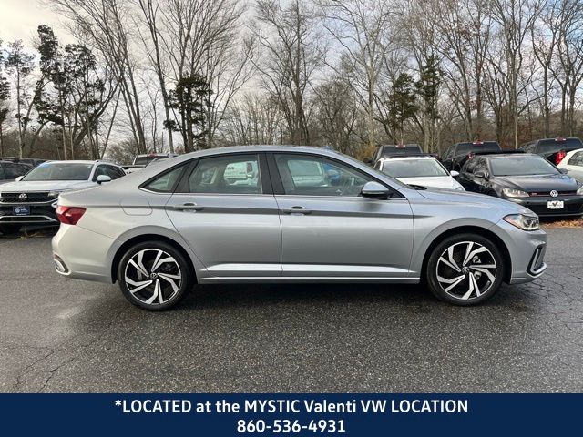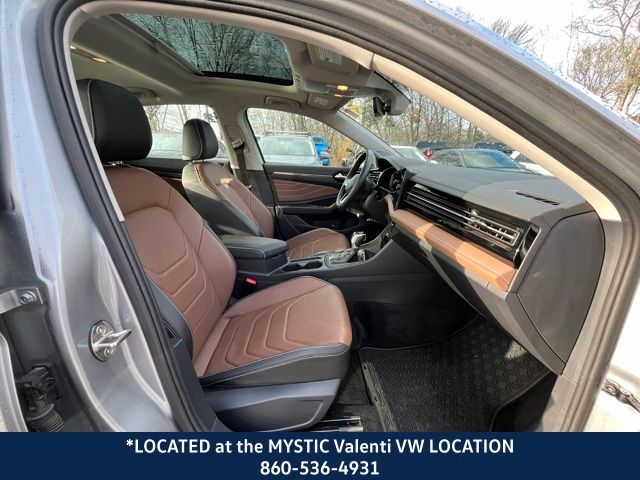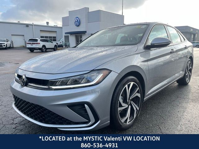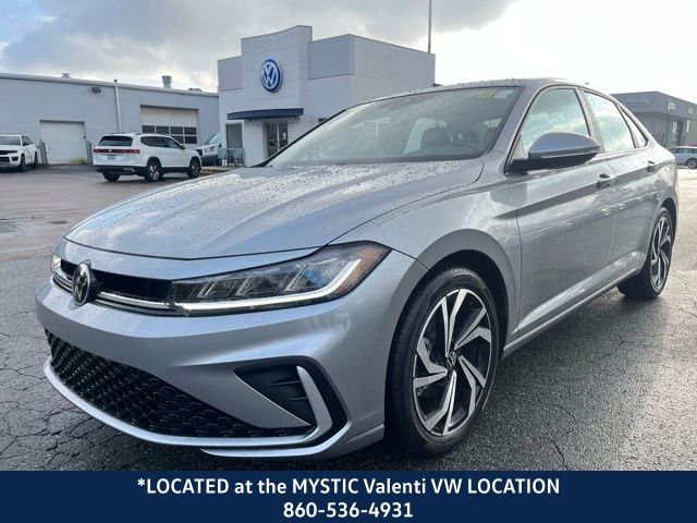 VW CERTIFIED 2 Year/24,000 Mile Warranty, Located at our Mystic VW location, Black Leather. CARFAX One-Owner. Clean CARFAX. Silver Metallic 2025 Volkswagen Jetta 1.5T SEL FWD 8-Speed Automatic with Tiptronic 1.5L I-4 DI DOHC Turbocharged